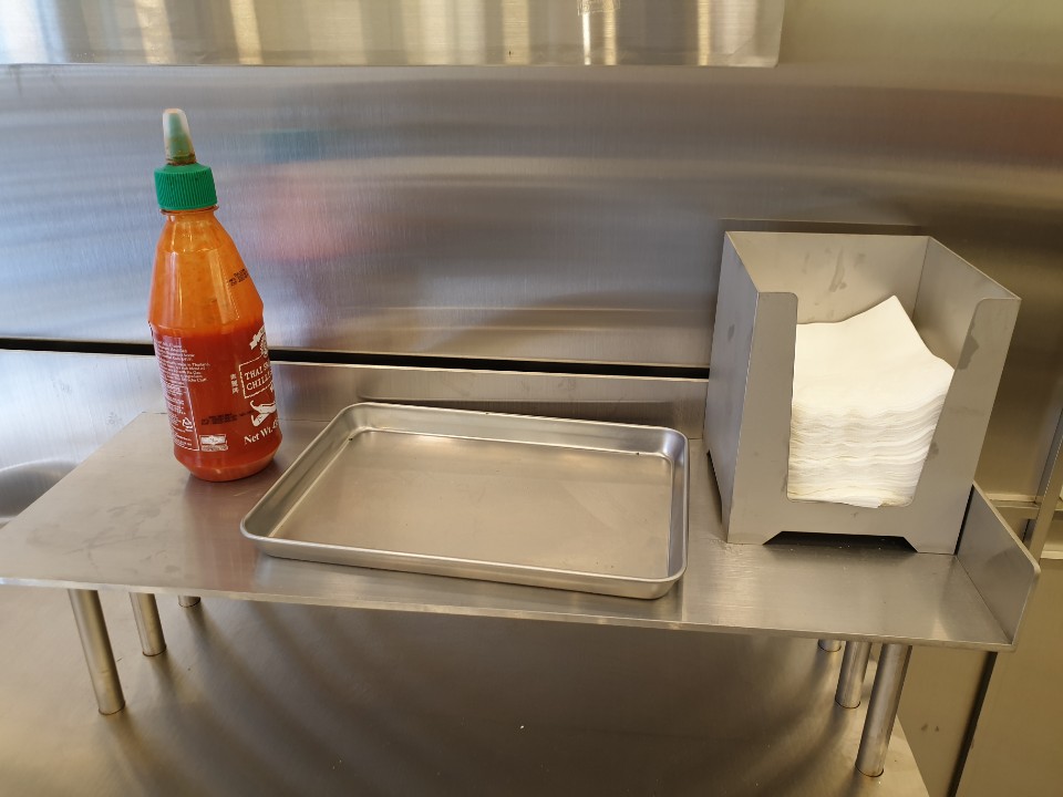 칠리? 소스가 있어서 매운 맛을 좋아하시는 손님들도 각자 취향에 맞게 드실수 있습니다. 먹고난 후에는 이곳으로 반납하시면 됩니다.