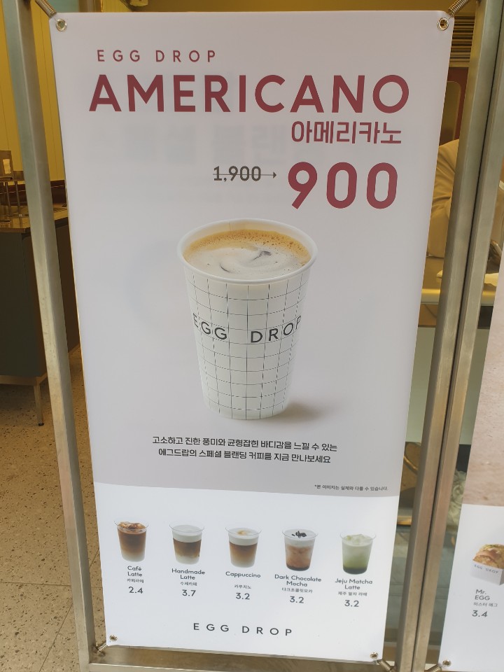 아메리카노를 900원이라는 가격에 세일하고 있었습니다. 물론 양이 적기는 하지만 다른곳은 기본이 1500원인걸 생각하면 토스트와 먹기에 딱 좋은 가격입니다.