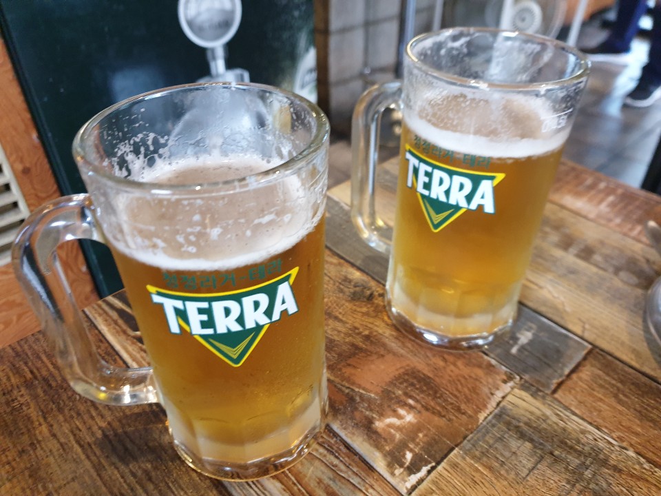 먹기에 최적의 온도로 뽑아주신 생맥주였습니다. 테라를 사용했네요. 이 집의 아쉬운점은 여름이라 창문을 다 열어놓았는데 파리가 들어와서 위생적으로 조금 더럽다는 느낌을 받았습니다. 또한 매장 옆쪽에 담배를 피우는 장소가 있어서 비흡연자들에게는 조금 짜증 나는 경험을 했습니다.