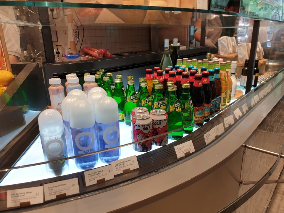 물과 콜라 등의 기성품들도 많이 준비되어있습니다. 모두 음료수 중에서도 가격대가 있는 제품들만 모여놓았네요.