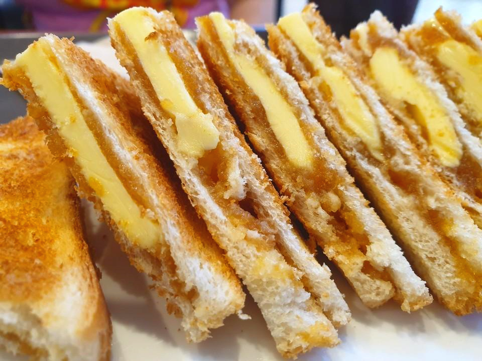 두툼한 굵기의 버터와 잔뜩 묻혀준 카야잼이 보기만 해도 군침 돌게 만듭니다. 입안에 들어갔을 때 처음에는 달콤한 맛이 확 들어오고 그다음 천천히 버터가 녹아가면서 바삭하게 구워진 빵과 절묘한 조화를 이룹니다.