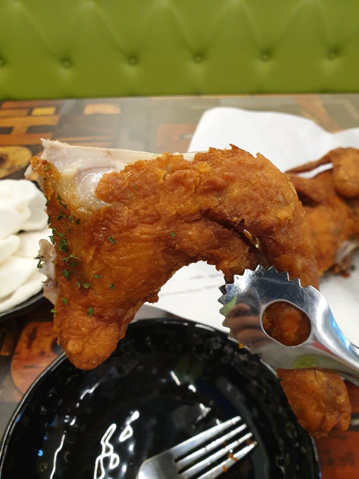 특이하게 기본 찬으로 새우칩이 나왔습니다. 직접 튀겨서 나온 것인지 굉장히 맛있었습니다. 치킨이랑 새우칩을 같이 먹는 건 정말 생소한 경험이었습니다. 의외의 시너지를 냅니다. 치킨이 단백질 음식이라서 탄수화물이 당기게 되는 것을 잘 이해한 것 같습니다.
