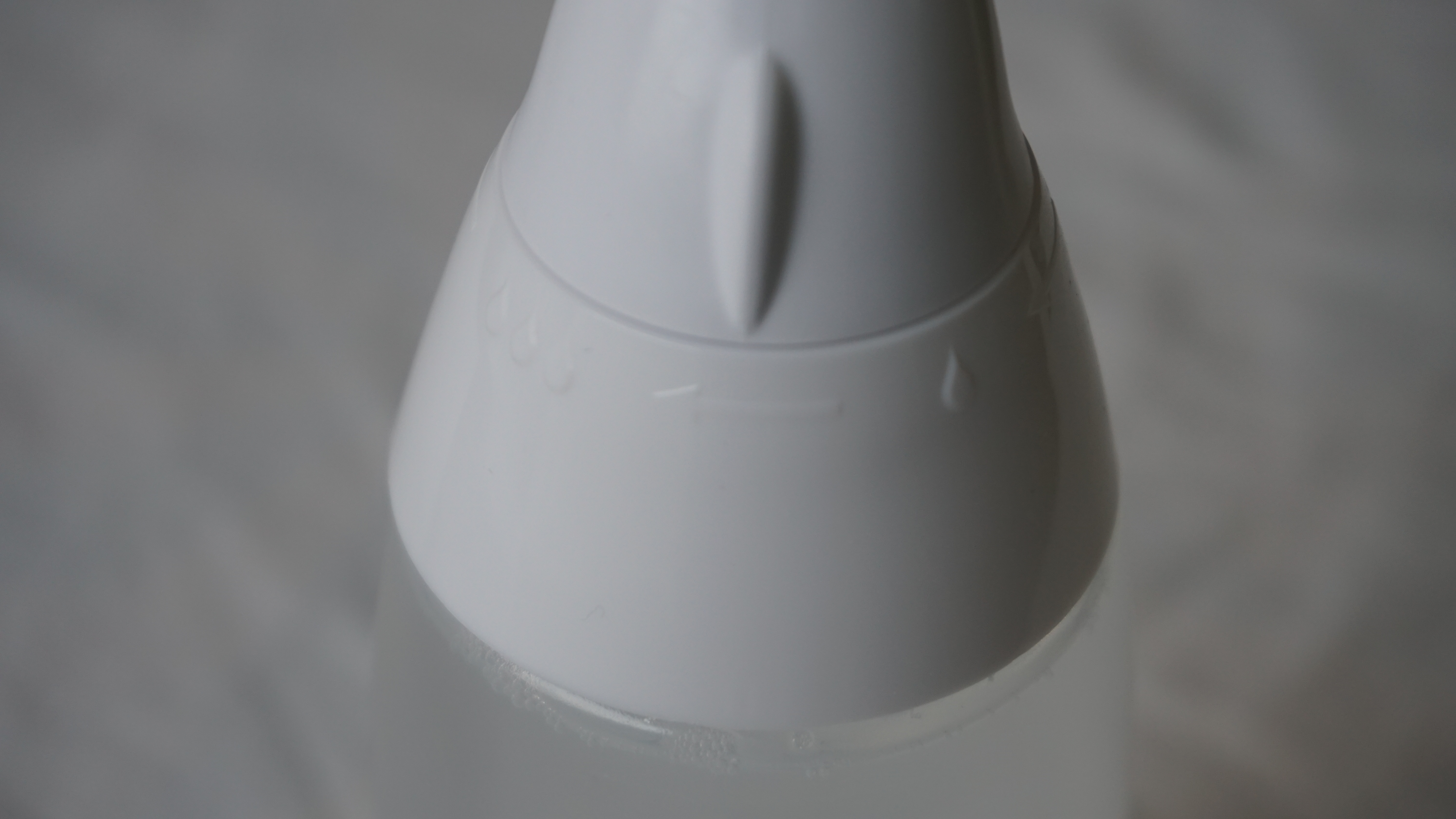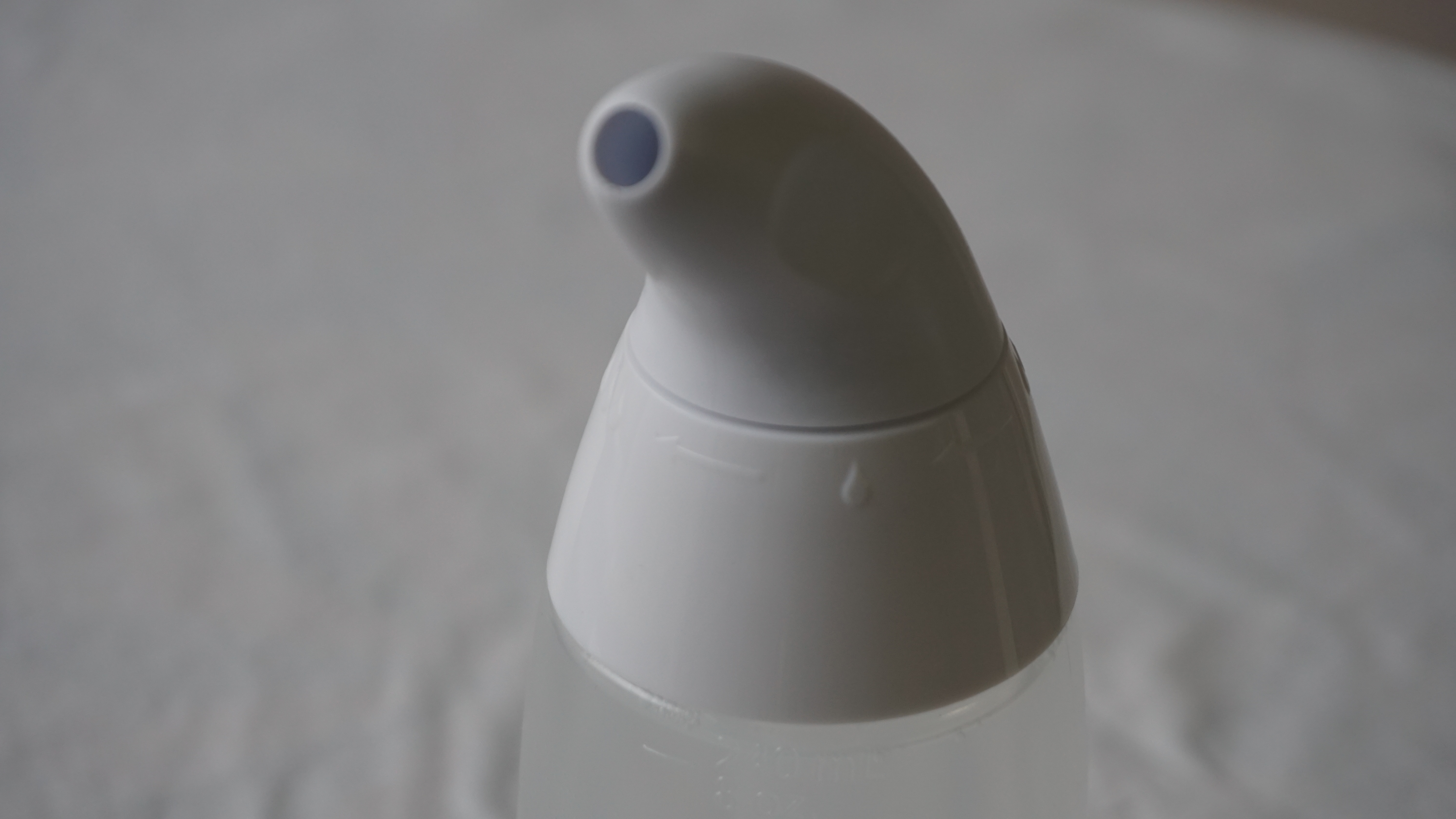 총 240ml를 사용할 수 있는데 보통 1회사용을 하면 다 쓰게 됩니다. 매번 꽉 채워서 사용하다 보니 중간라인이 별 의미가 없게 느껴집니다. 말랑말랑한 고무 같은 느낌이어서 살짝만 눌러줘도 물이 잘 분사가 됩니다.