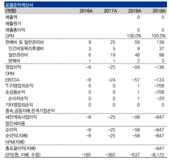 또한 최근 몇년간 사실상 매출액이 아예 없다는 점도 투자자에게는 부담스러운 측면일 수밖에 없습니다. 제품군들이 조금이라도 상품화가 돼서 매출이 발생하기 시작한다면 조금 안도하면서 투자할 수 있을 테니까요..