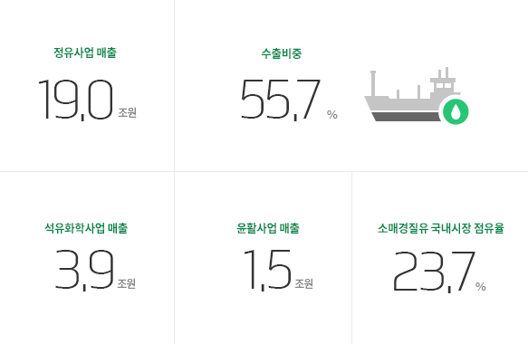 정유산업, 석유화학, 윤활 사업 순으로 매출액을 차지하고 있습니다.