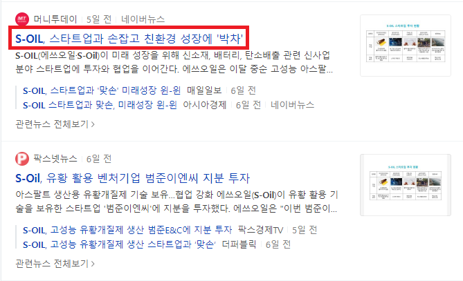 정유 회사답지 않게 환경투자도 100억 원 이상 하고 있다고 합니다.