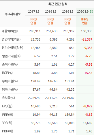 따라서 재무상황도 부채비율이 2020년도 기준으로 200% 정도까지 오게 되었네요.