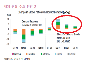 위와 같이 내년도 1분기를 기점으로 원유 수요가 상승하는 것을 알 수 있습니다.