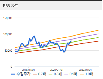 한국금융지주의 카카오 뱅크 지분가치에 대한 여러 가지 엇갈린 의견들이 존재합니다. 한국 금융지주의 주가는 79,000원인데 몇몇의 애널리스트들은 이미 주가에 해당 가치가 선 방영되어있어서 추가 상승에는 도움이 않을 것이라고 의견을 내놓고 있습니다. 하지만 다른 분들은 보수적으로 지분 3조에 50%를 디스카운트한 1조 5천억원의 가치를 추가로 더하면 목표주가를 10만 원까지 책정할 수 있다고 주장하고 있습니다.