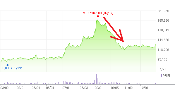 카카오 게임즈의 상장으로 일시적으로 크게 상승했던 주가는 며칠이 되지 않아서 급락했습니다. 이를 보면 일시적인 이슈로 상승하는 주가는 오랫동안 이어지지 않는다는 것을 알 수 있습니다. 결국, 상장이 진정한 모멘텀으로 주가가치를 상승시키려면 그에 걸맞은 실적이 뒷받침 되어야 하는데 단기간 내에 카카오와 한국 금융지주가 그러한 성과를 만들어낼지는 지켜봐야 할 것 같습니다.