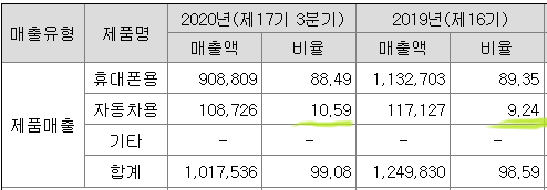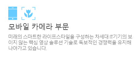 모바일 카메라는 현재 매출액에서 가장 비중이 큰 사업부분입니다. 주요 매출처로 삼성전자, 소니, 샤프, ZTE 등의 회사가 있습니다. 스마트폰 사업 부분이 2010년대 초반에 폭발적으로 성장하다가 최근 업체 간 치열한 경쟁으로 성장 둔화를 겪고 있습니다. 소비자들의 스마트폰 교체주기가 길어진 것도 영향을 주었습니다.