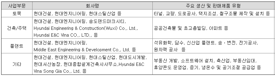 현대건설 사업 내용