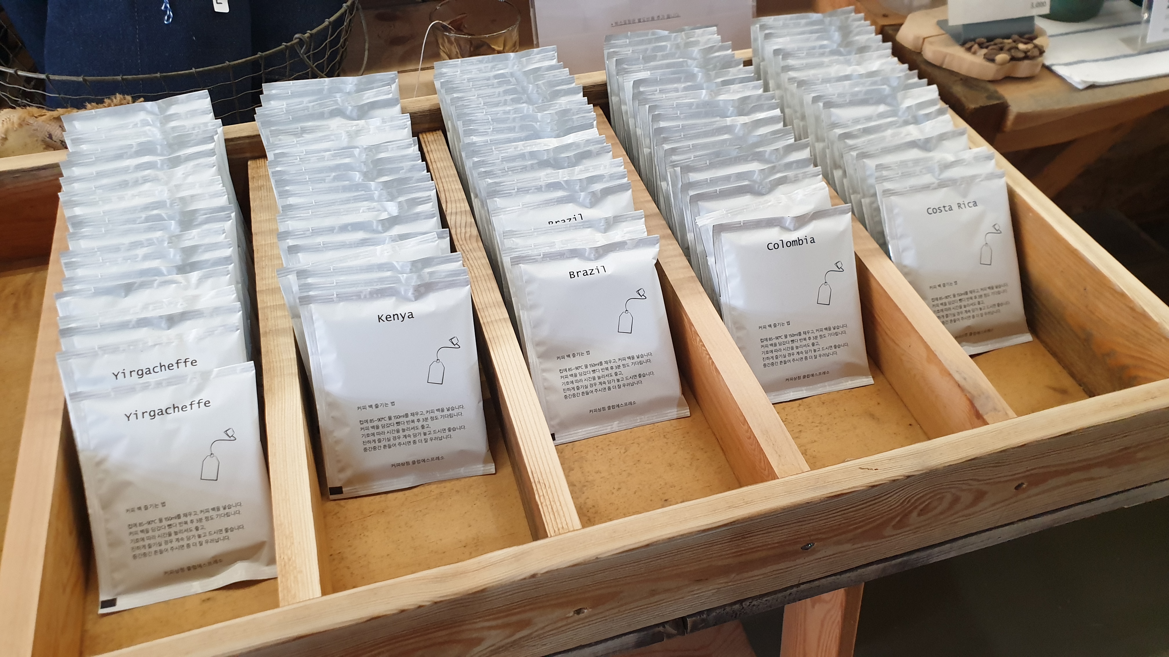 원두별로 나눠서 커피백을 판매하고 있었습니다. 가격이 잘 기억이 나질 않는데 대략 천오백원 정도 했던 것 같습니다.