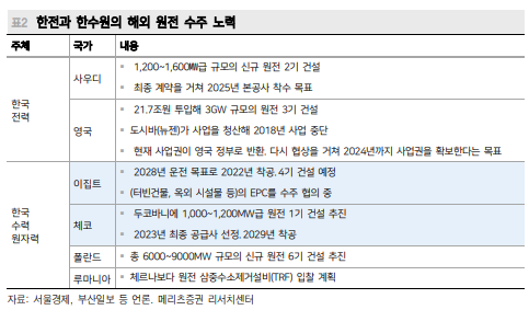 현재 이집트와 체코에 수주를 하려고 노력 중이며