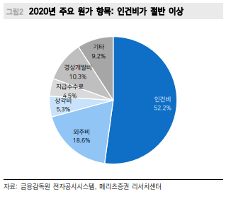 컨설팅업체이기 때문에 인건비가 원가에 절반을 차지합니다.