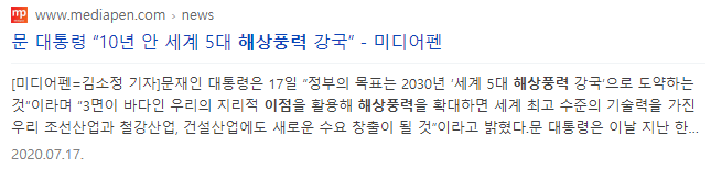 이에 따라 정부도 10년 안에 세계 5대 해상풍력 강국으로 도약하겠다고 발표하였습니다.