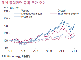 해외 풍력관련주들은 1월까지 상승하다가 이후 가파른 조정을 받았습니다.