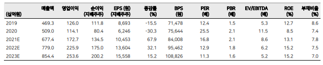 예상 PER은 16.8배로 동일업종 34배에 비해서 상당히 저평가되어있습니다.