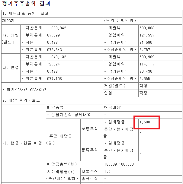 시가배당률은 1% 정도이며 배당성향은 22%입니다.