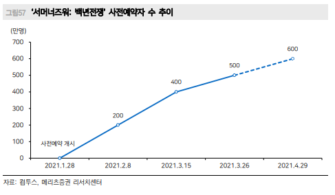 백년전쟁의 사전예약자수는 3월에 이미 5백만 명을 넘어섰습니다.