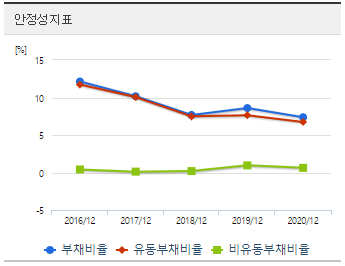 부채비율은 10% 미만으로 매우 안정적인 상태입니다.