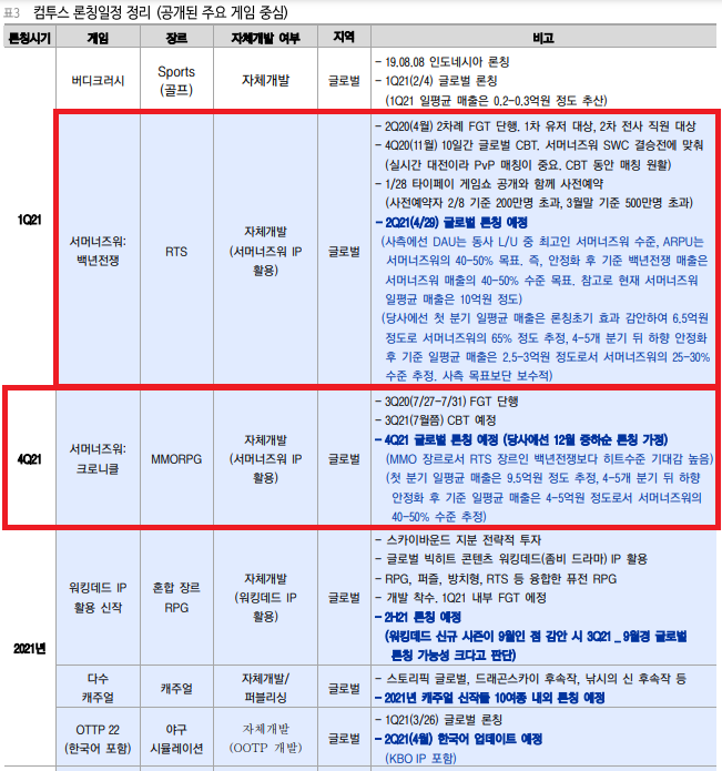 또한 4분기에는 서머너즈 워 IP를 활용한 MMORPG인 크로니클이 출시될 예정입니다.