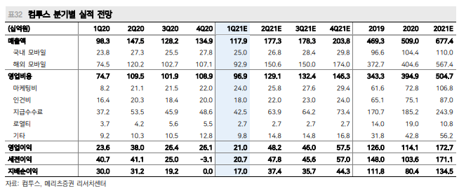 컴투스 분기별 실적은 1분기에는 시장 컨센서스 대비해서 다소 하회할 전망입니다.