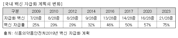 정부는 23년까지 국내 필수백신 28종 중 21종을 국산화하는 것을 목표로