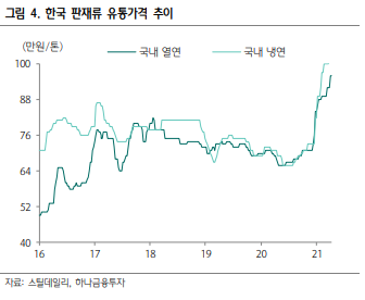 하지만 작년말을 기점으로 실물경제가 살아나면서 수요가 빠르게 회복되어 유통 가격이 상승하기 시작했습니다.