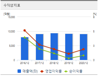 재작년에는 순이익률이 0%대로 떨어졌습니다.