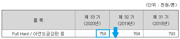 2018년부터 원재료인 냉연강판과 도금강판의 가격이 꾸준히 하락하고 있었습니다.