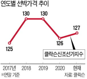 하지만 위의 신조선가지수를 보시면 2017년에 선박을 주문했던 것이 정말 신의 한 수라는 것을 알 수 있습니다.