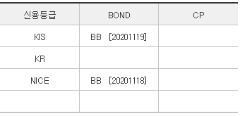 주요 신용평가기관의 등급은 BB로 나타나고 있습니다.