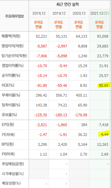 현재 PER이 4.5배밖에 되지 않기 때문에 올해가 역대급 초호황이라고 할 지라도 너무 저평가받고 있다고 봅니다.