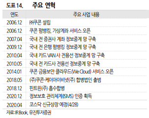 쿠콘은 2006년에 설립되었으며 07~09년까지 국내 전 증권사 및 은행의 정보중계 망을 구축하였습니다.