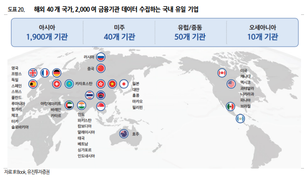 또한 국내 대표적인 은행 및 증권사들과 전용망이 연결되어있고 데이터를 매일 수집하는 것도 큰 장점입니다.