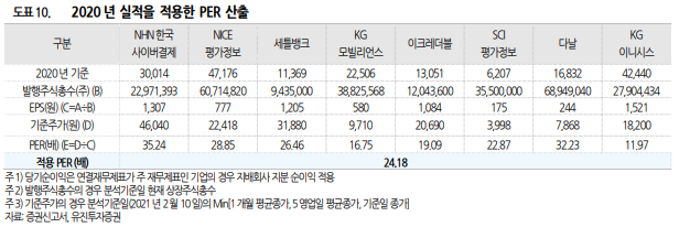 국내 대표적인 핀테크 기업들의 PER을 분석하여 평균을 내보았습니다.