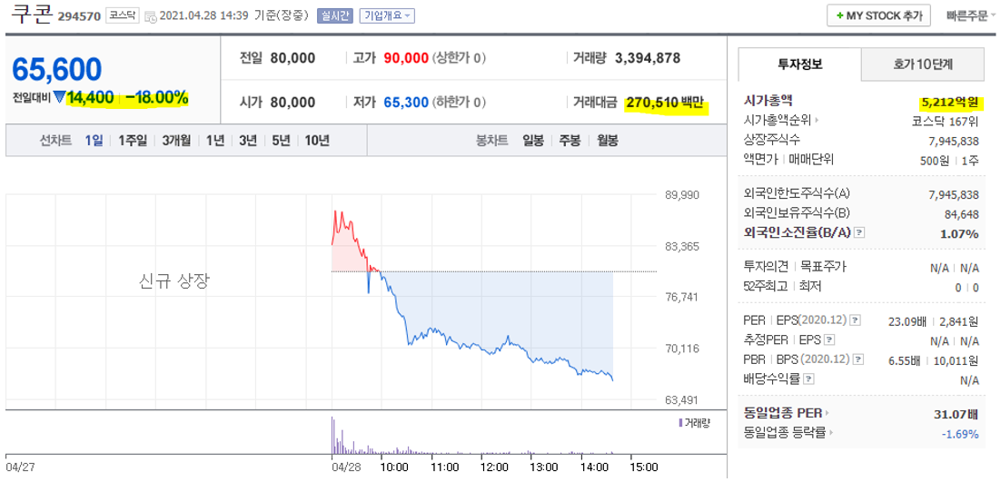 비즈니스 데이터 플랫폼 기업 쿠콘이 28일 오늘 상장하였습니다.