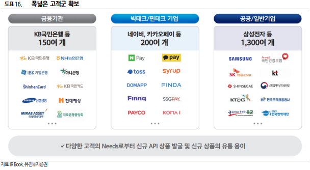 KB국민은행 등 국내 150여개의 금융기관과 네이버, 카카오페이 등 200여 개의 핀테크 기업도 고객군으로 확보하고 있습니다.