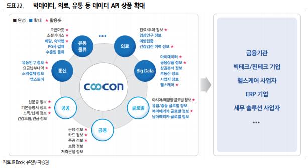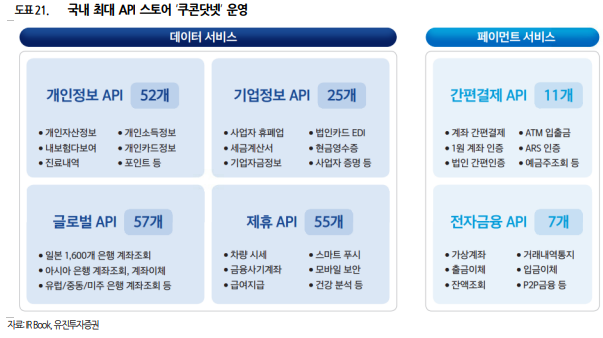기존 금융 공공 중심에서 빅데이터, 의료, 유통 등 데이터 API 상품을 확대하고 있습니다.