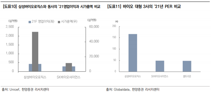 특히 삼성 바이오로직스와 비교해보면 영업이익은 1.46배밖에 차이가 없지만 시가총액은 4배 이상 차이가 나고 있습니다.