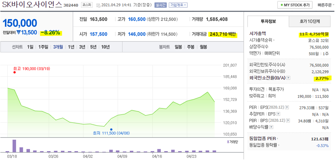 따라서 SK바이오사이언스가 다른 대형 바이오주의 대안이 될 수 있다는 것이죠.