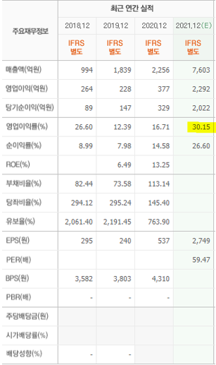 위의 PER 수치를 보시면 삼성 바이오로직스나 셀트리온보다 저평가받은 것을 알 수 있습니다.