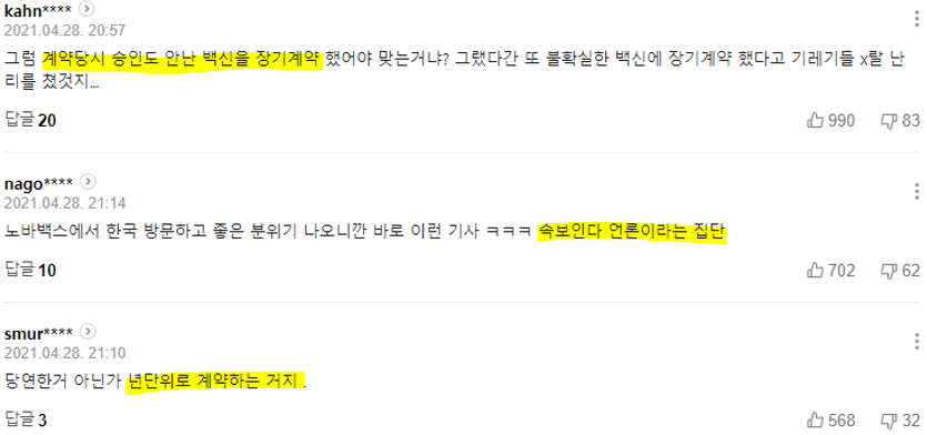 계약당시에 백신 사용승인이 되지 않았기 때문에 회사 입장에서는 연단위 계약을 할 수밖에 없다고 옹호하는 입장이 많습니다.