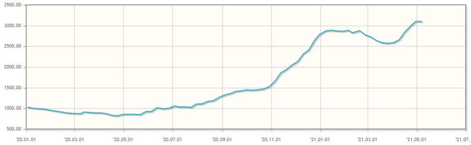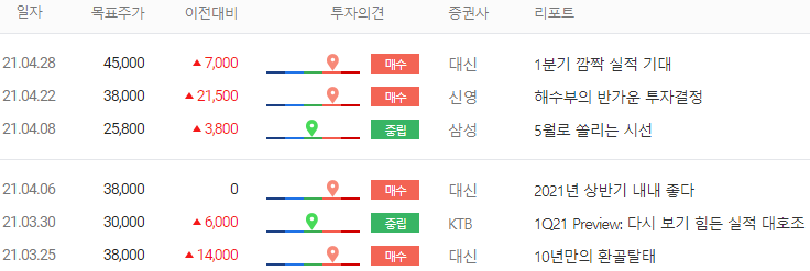 HMM은 최근 39항차 만선 행진을 기록하였고 이번 주 40항 차에도 만선을 이어갈 것으로 보고 있습니다. 글로벌 컨테이너선 운임비인 상하이컨테이너 운임지수도 4/30일 3100포인트를 기록하면서 사상 최고치를 경신하였습니다. 최고 운임에 최대 물동량을 지속해서 발생시키고 있어서 더할 나위 없이 좋은 상황입니다. 거기다가 3척의 임시 선박까지 추가해서 매출액을 확대시키기 때문에 올해 HMM의 실적은 예상치는 더욱더 상승할 것으로 보입니다.