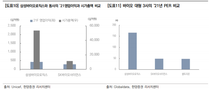 또한 하반기에 CMO 추가 계약이 이루어질 가능성이 높습니다. 왜냐하면 CEPI(전염병 대응 혁신연합 예약 물량 가운데 아직 계약되지 않은 물량이 있기 때문입니다. CEPI는 전 세계적으로 백신을 공동 구매하여 세계 각국에 분배해주는 역할을 하는 기구입니다. 업계에서는 기존 파트너사인 AZ, 노바백스 가운데 한 곳과 추가 계약이 이뤄질 것으로 보고 있습니다. 그렇게 되면 위의 두 회사의 백신 CMO 업체인 SK바이오사이언스로 추가 계약이 될 확률이 매우 높은 것이죠. 이에 따라 하반기로 갈수록 매출액과 영업이익이 계단식을 성장할 것으로 보입니다.