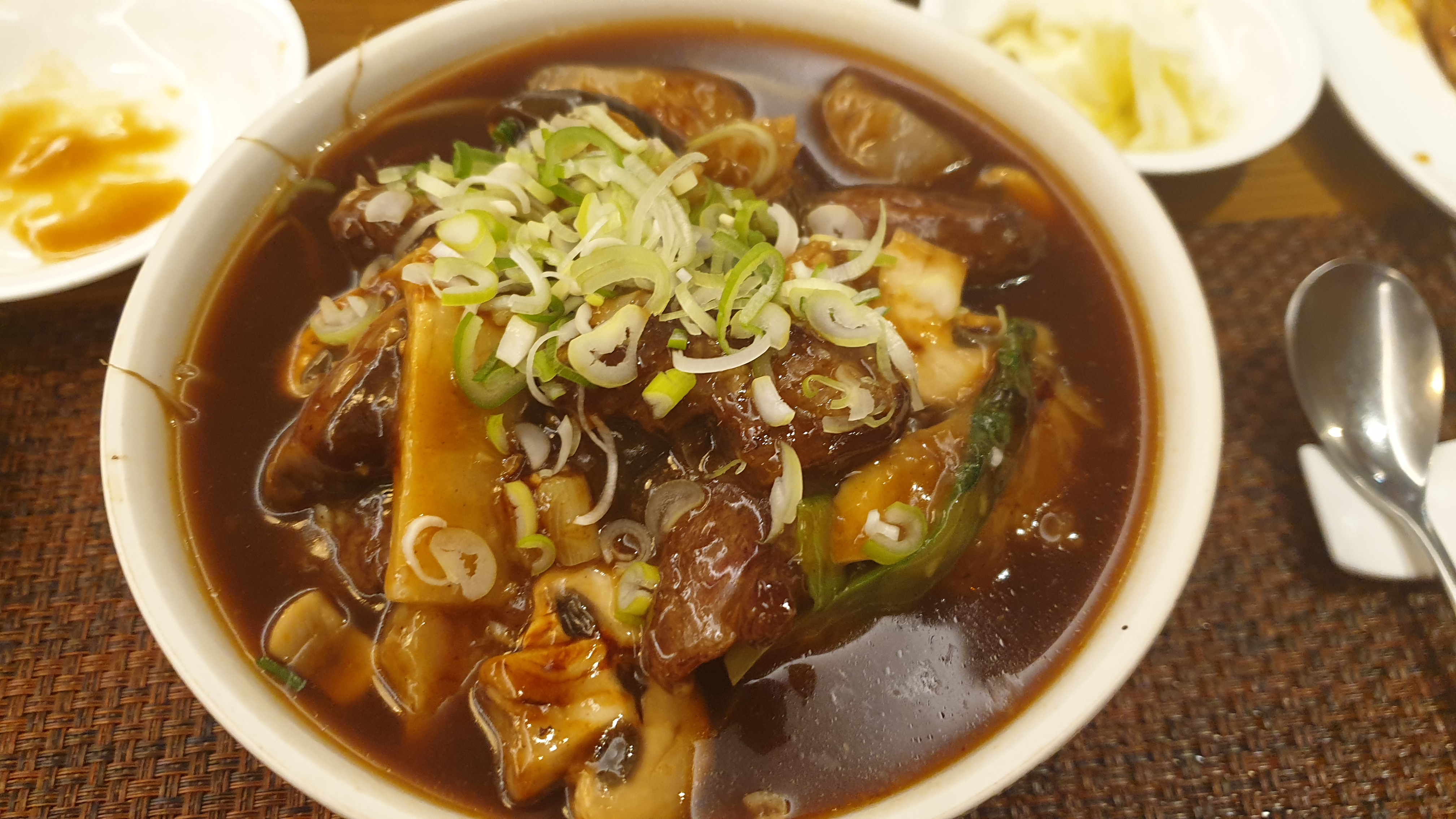 안심우육탕면입니다. 가격은 12,000원이에요. 고기가 정말 많았습니다. 종업원분이 섞어서 먹으라고 하셨습니다. 죽순, 버섯 그리고 숙주나물이 각각 모두 맛이 살아있었습니다. 또한 고기도 안심이라서 굉장히 부드러웠습니다. 특히 도가니 부분도 같이 넣어주셨는데 고소해서 입이 즐거웠습니다. 이번이 두번째 방문인데 이곳은 무엇을 먹어도 맛있네요. 동백 근처에 중식을 먹고싶으신 분들에게는 강추드립니다.