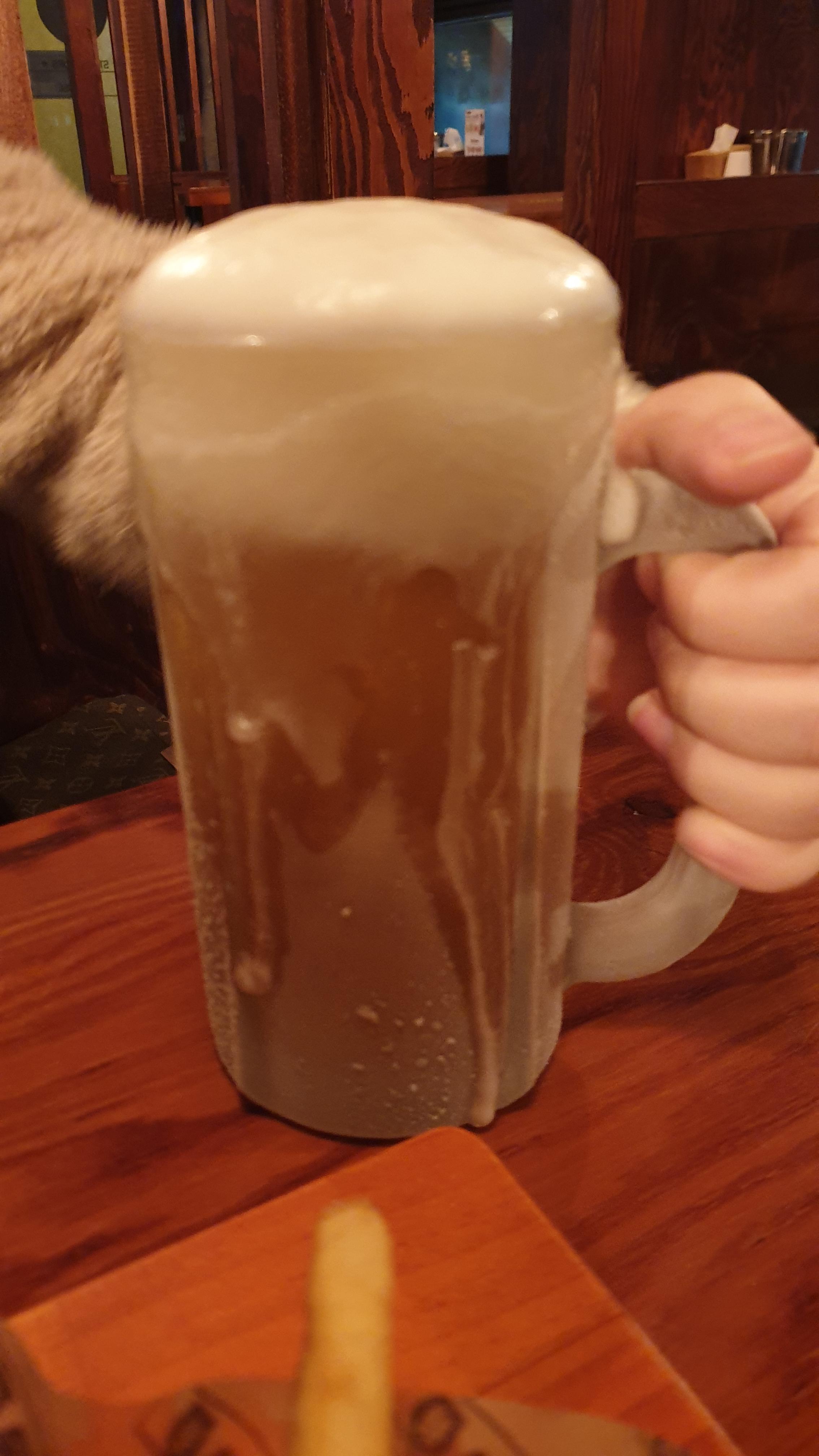 간판에 영하 40도의 맥주잔이라고 광고하고 있었어요. 보기만 해도 서늘해지는 맥주입니다. 시원하게 들이키면 스트레스가 싹 날아가네요.