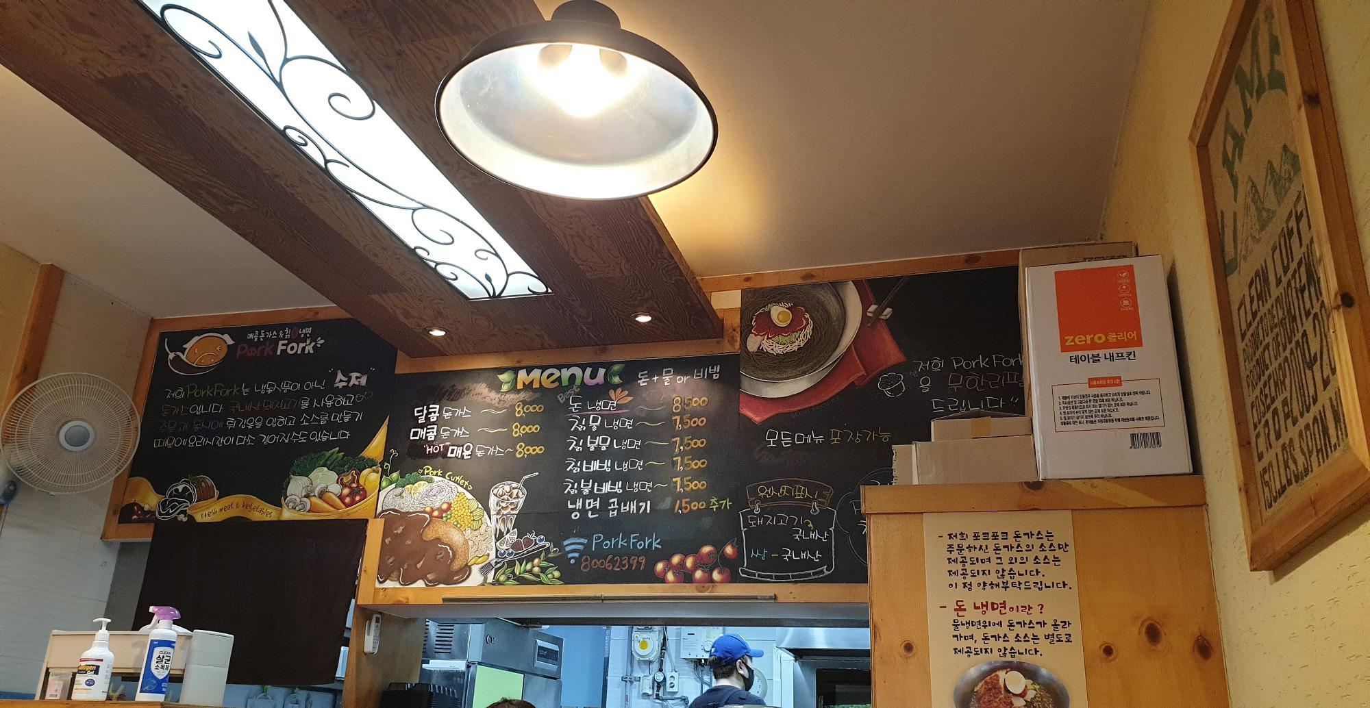 동백 맛집 포크 포크 돈가스와 칡냉면