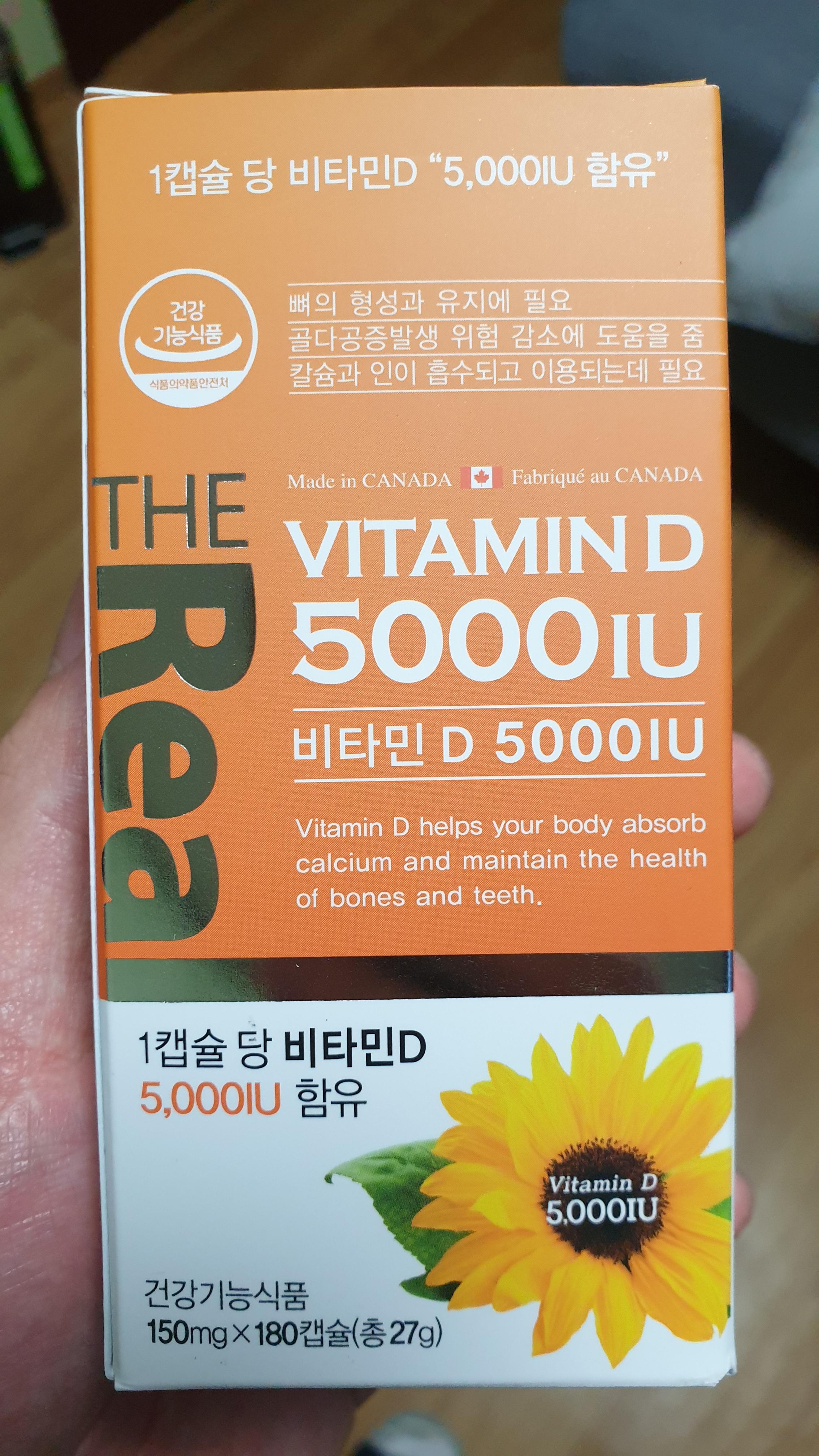 더리얼 비타민D 5000IU 150mg x 180캡슐을 소개해보려고 합니다. 대한민국 성인중에서 90%가 비타민D가 부족하다고 합니다. 비타민D는 다른 비타민들과 달리 우리몸에서 합성할 수 있는 비타민입니다. 그만큼 몸에 꼭 필용한 요소이기 때문이겠죠.